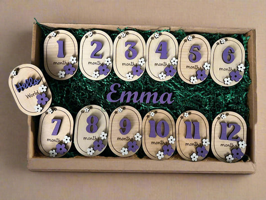 Baby Gift Set Bundle: Baby monthly milestone cards + custom name + birth plaque