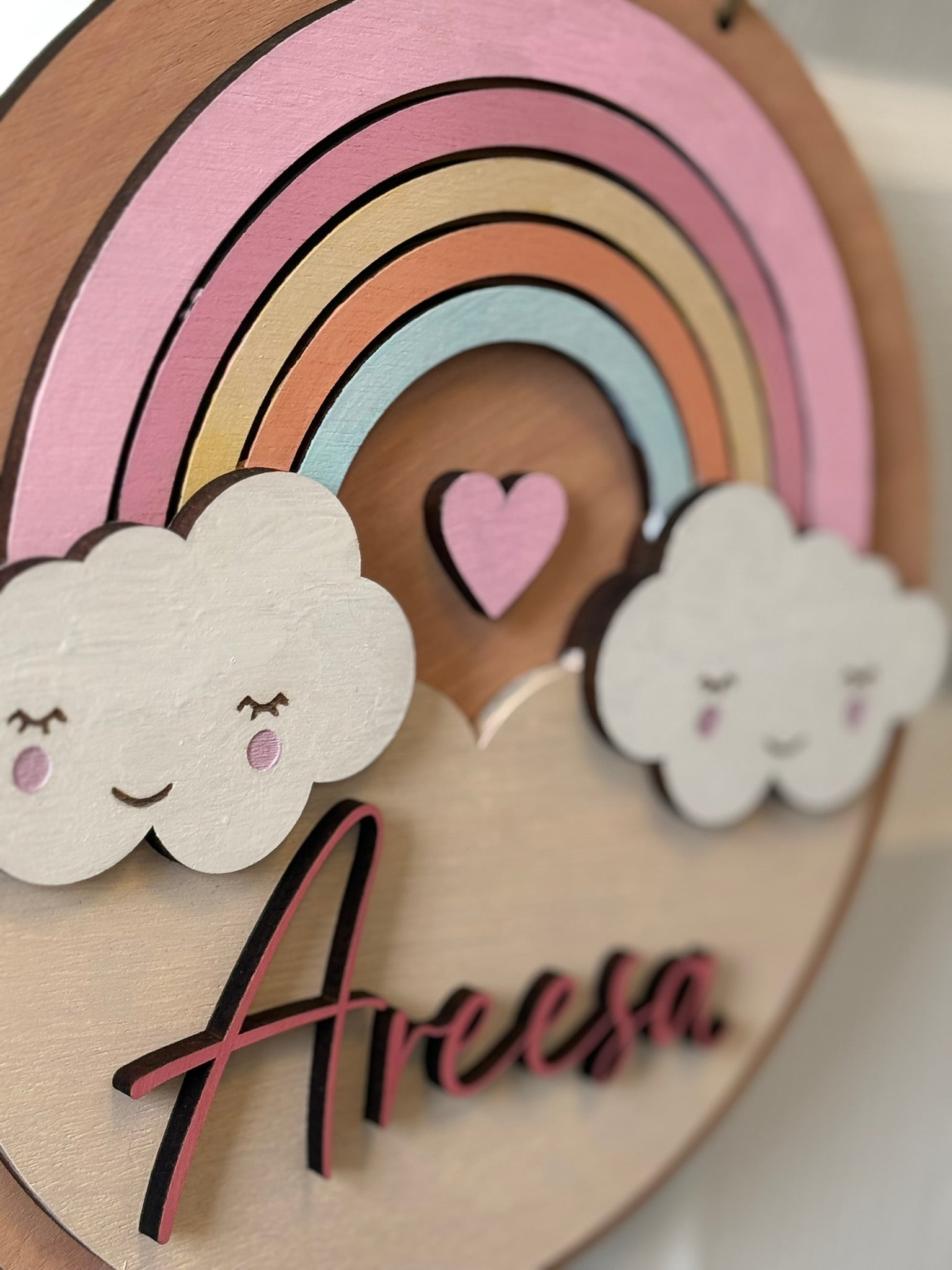 Give your little one’s room a touch of love and warmth with this adorable rainbow-themed name sign – a perfect keepsake and décor piece for years to come!