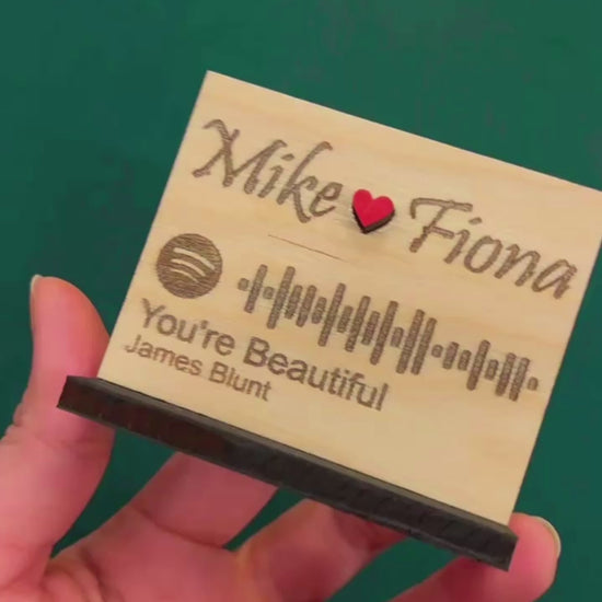 Turn your favorite song into a beautifully engraved wooden keepsake with our Personalized Wooden Song Plaque. Perfect for music lovers, couples, and special occasions, this handcrafted piece brings your cherished melodies to life. Featuring a laser-engraved Spotify scan code, song title, and artist name, this elegant display allows you to instantly play the song on Spotify by simply scanning the code in the Spotify app with your phone.
