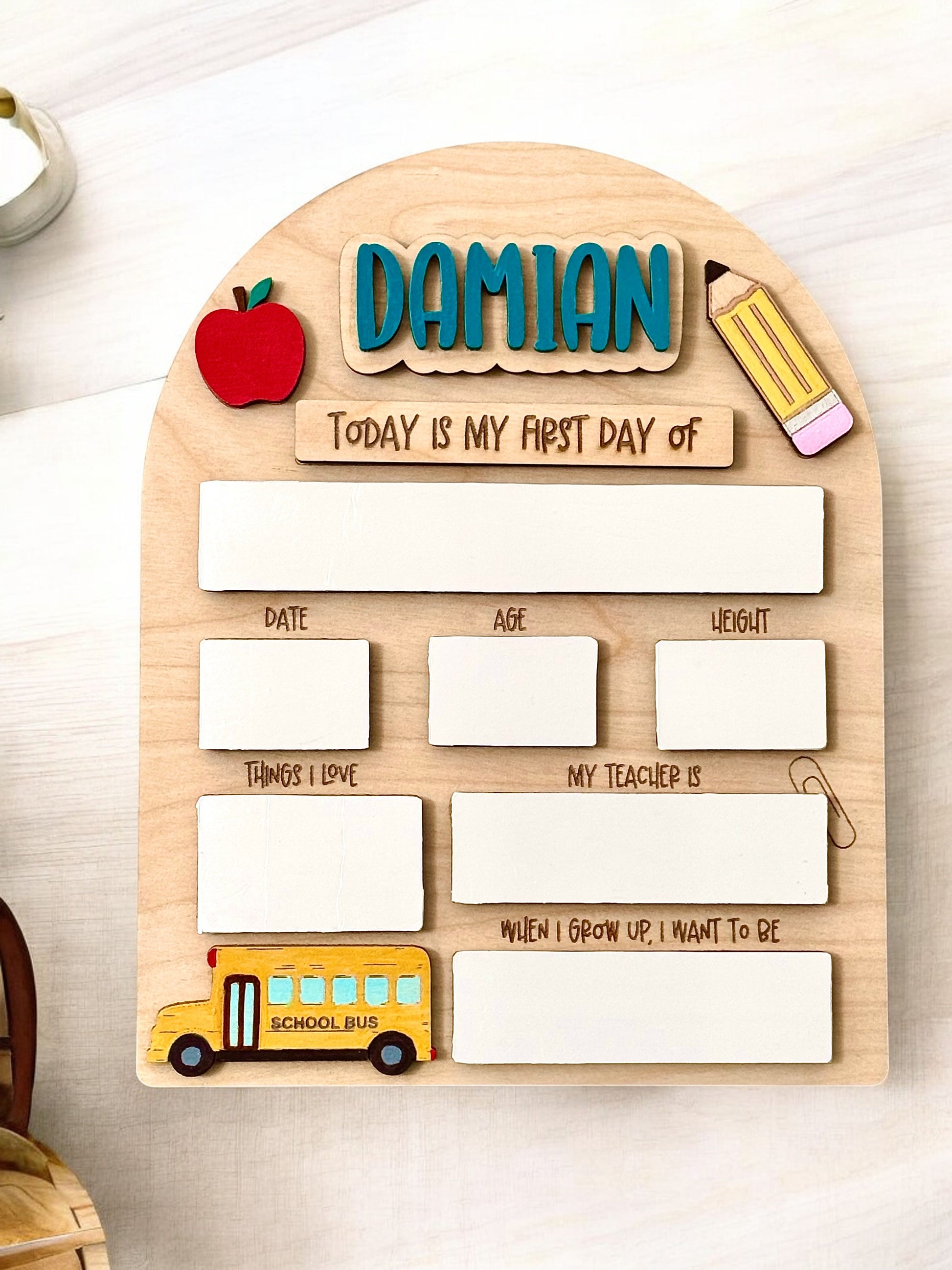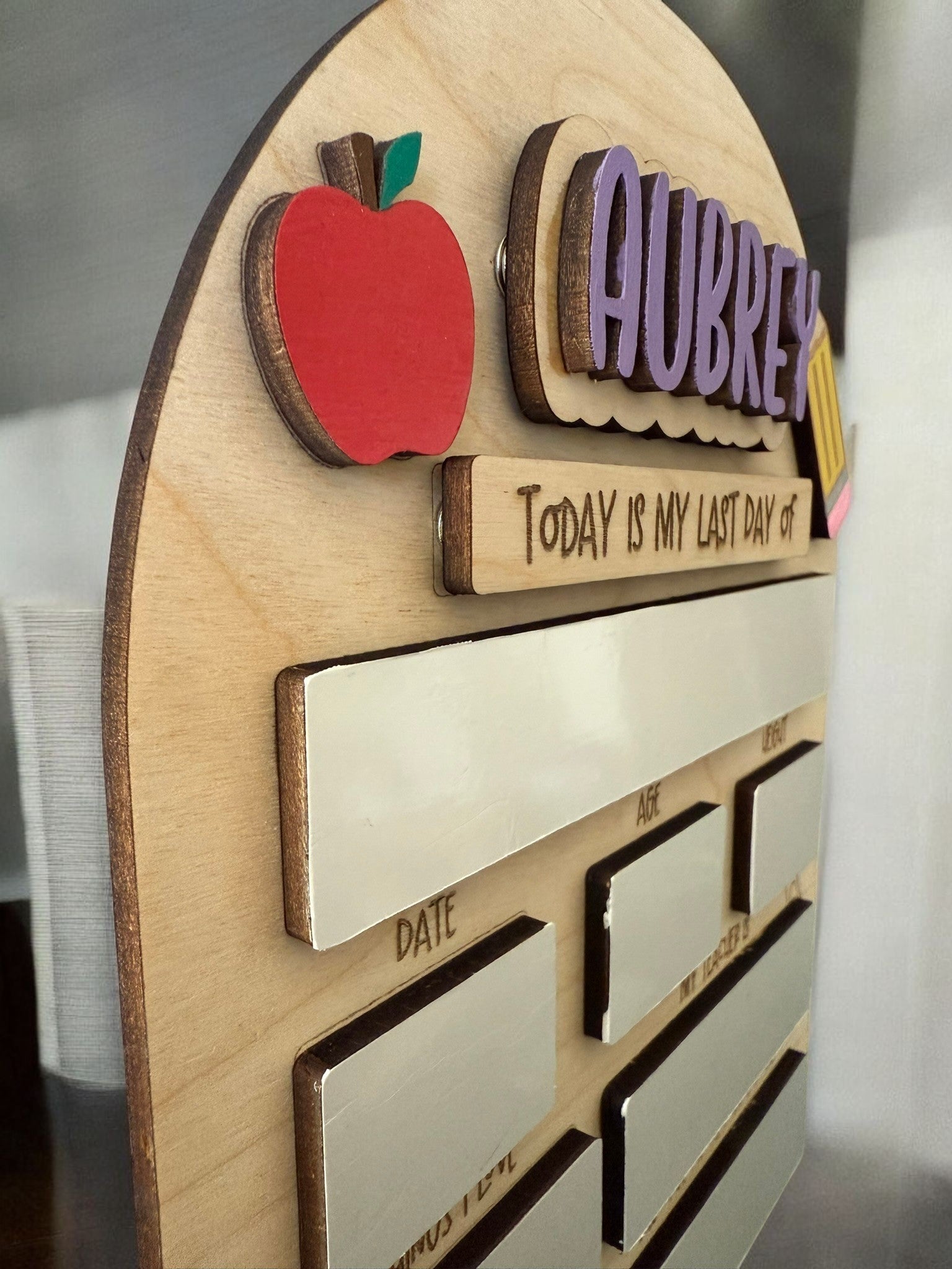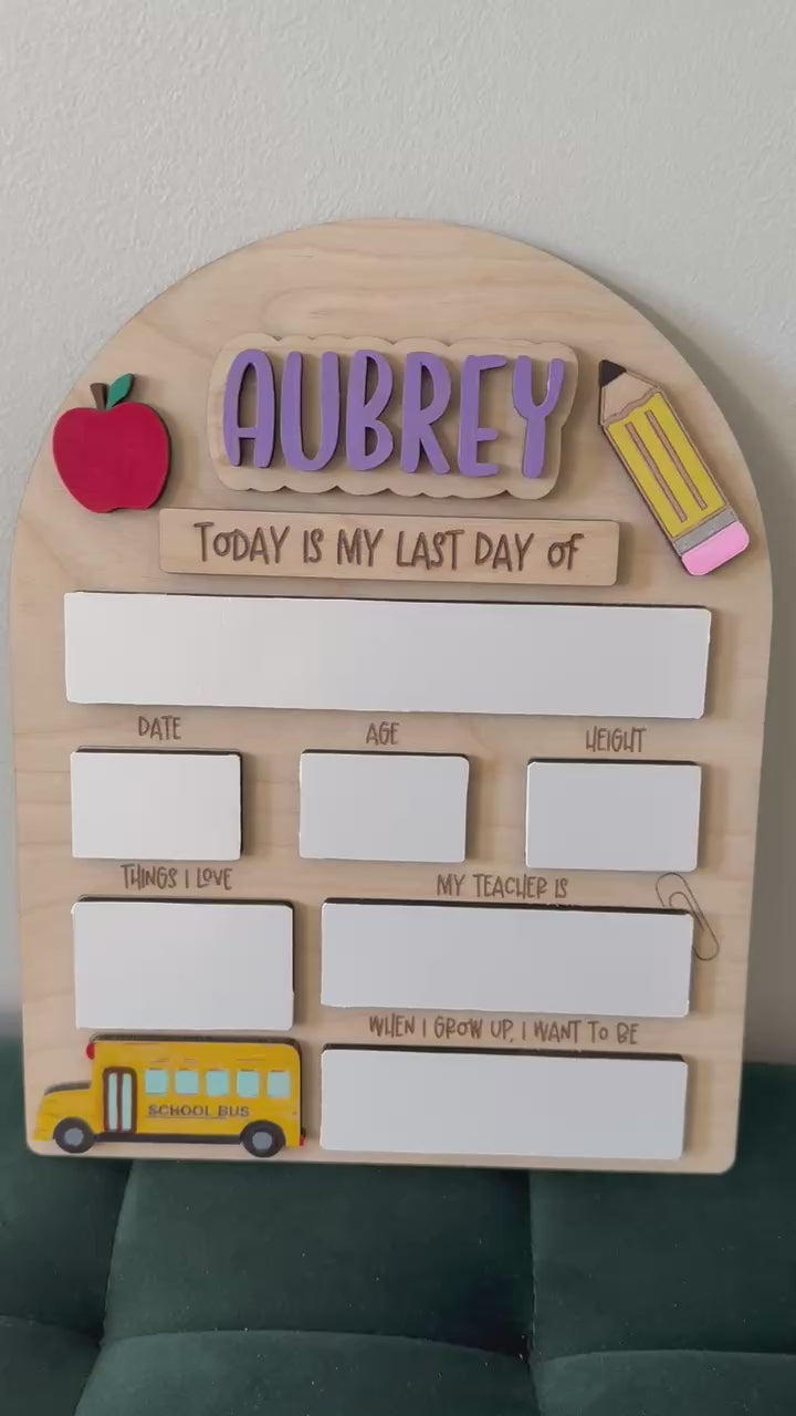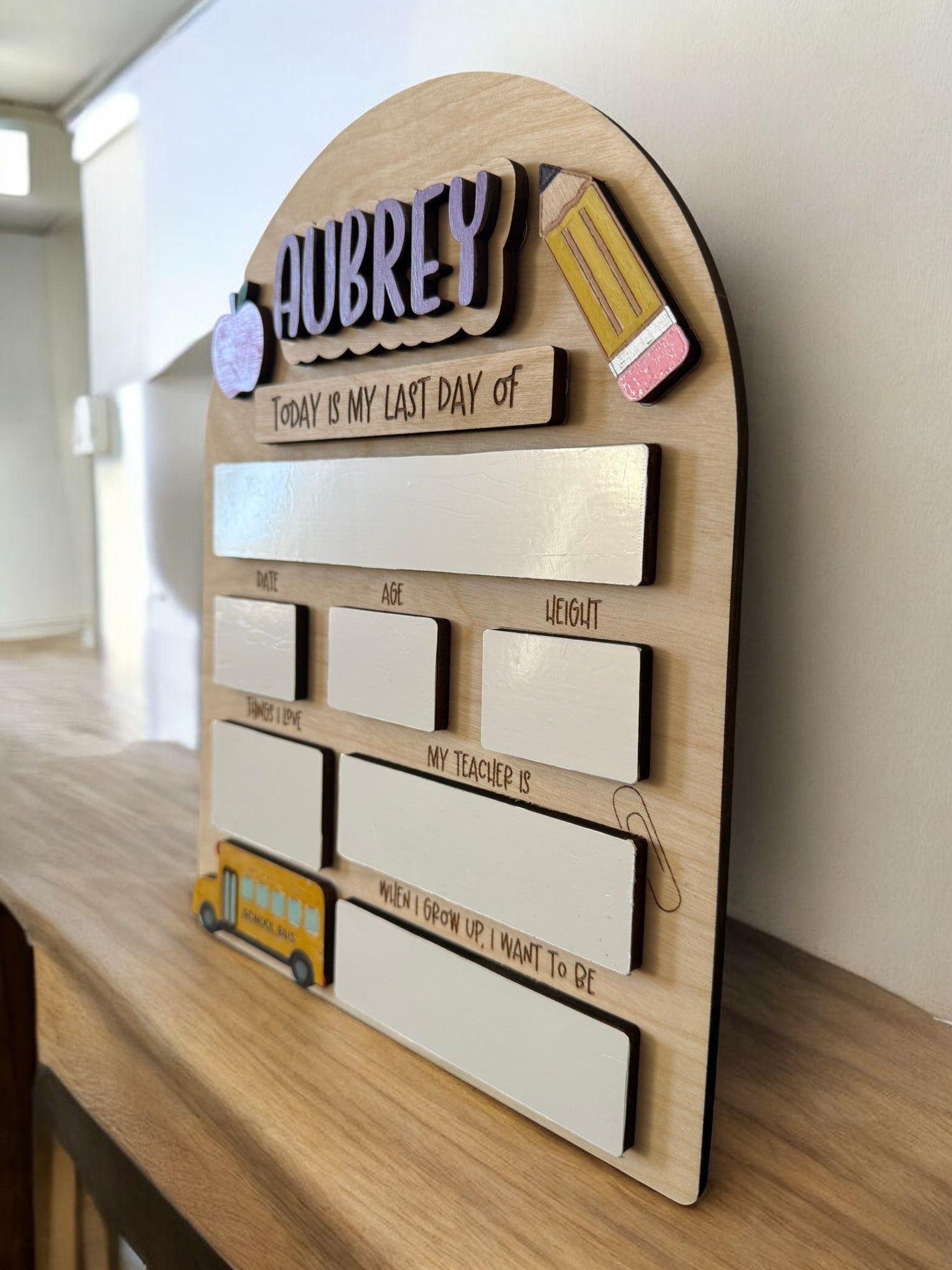 Capture the magic of your child's school milestones with this beautifully crafted personalized school name board. Perfect for snapping those adorable "First Day of School" and "Last Day of School" photos, this keepsake makes each school year memorable!